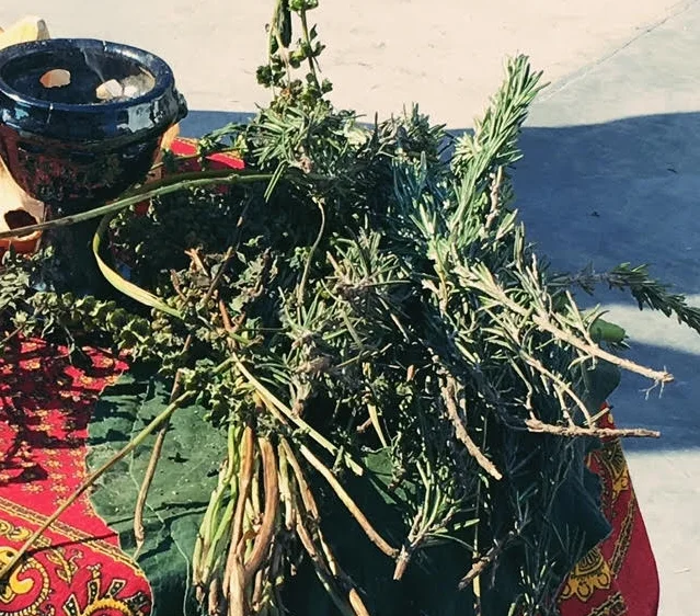 One is supposed to complete this particular ritual a few times per year, at each solstice, or before certain events to rebalance yourself and start anew from a cleansed state. We all moved out from under the shade and were handed bouquets of different aromatic herbs. I recognized one as rosemary, but couldn't name the other two. With our right hand on our heart and herbs overtop, we faced east to thank the sun for the joy it brings. We turned west to thank the moon and ask that in our darkest times we would be protected. We turned north and south, thanked the mountains and the spirit of warmth and love. We thanked the air and the cosmos, and finally the earth, for allowing us to walk on her, and apologized for the trash and destruction we have brought.